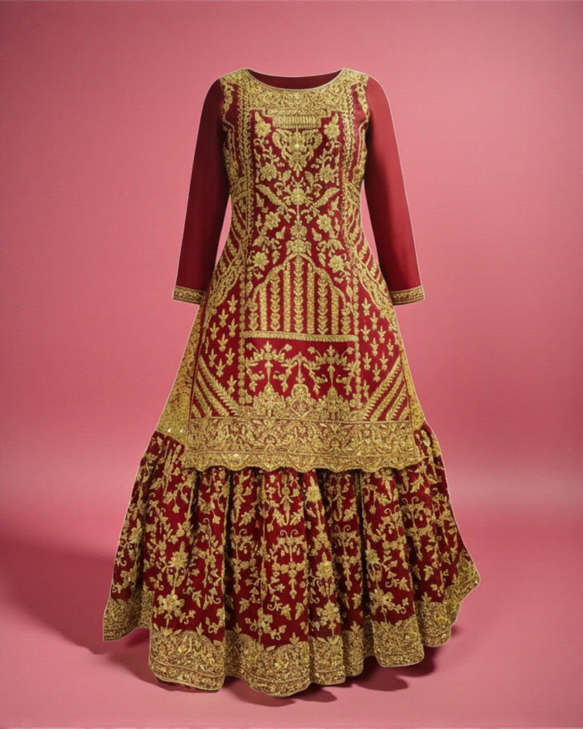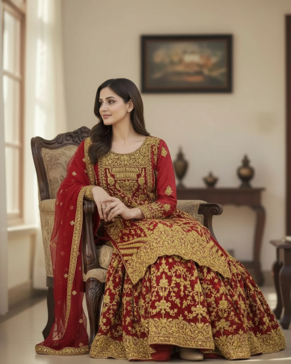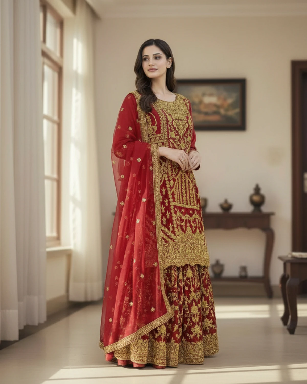 - Color: Deep Red with Gold Embroidery