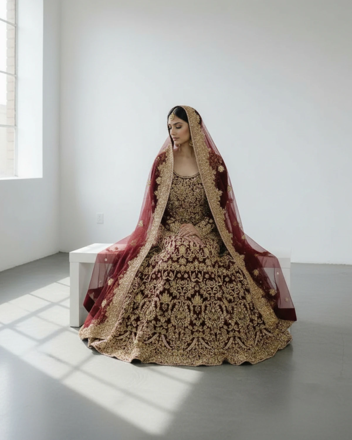 Maroon Bridal Lehnga With Heavy All-Over Gold Embroidery