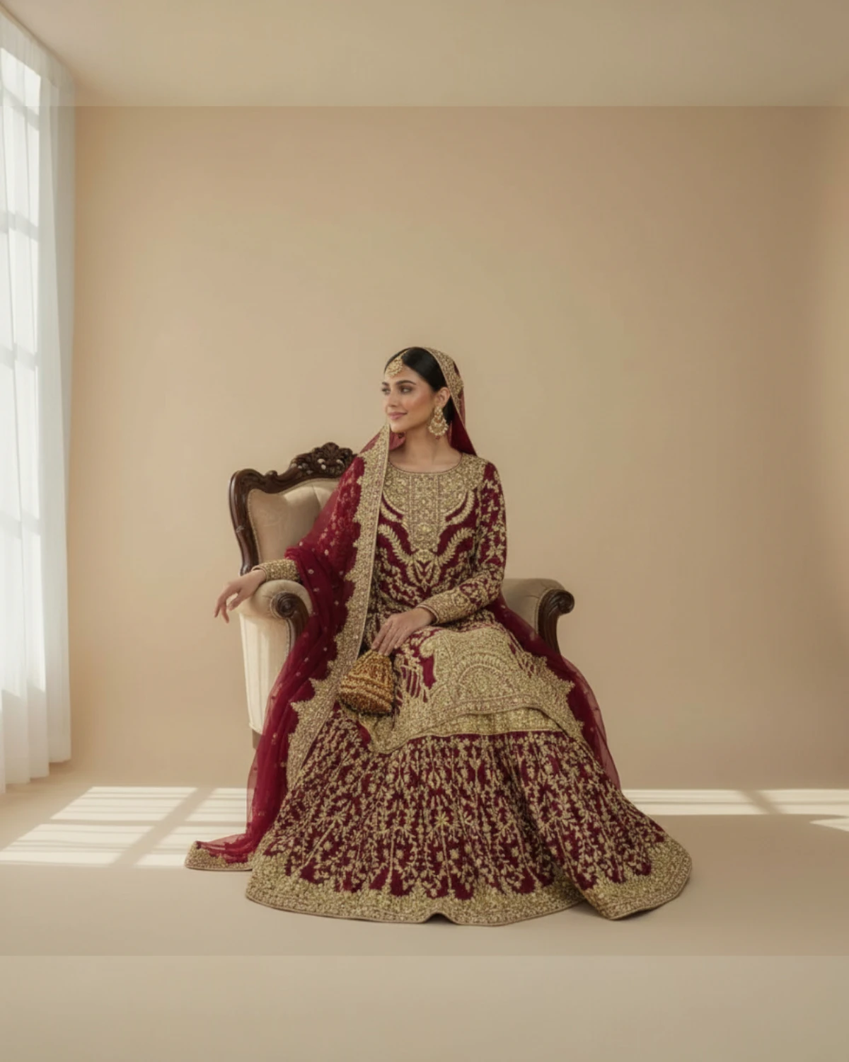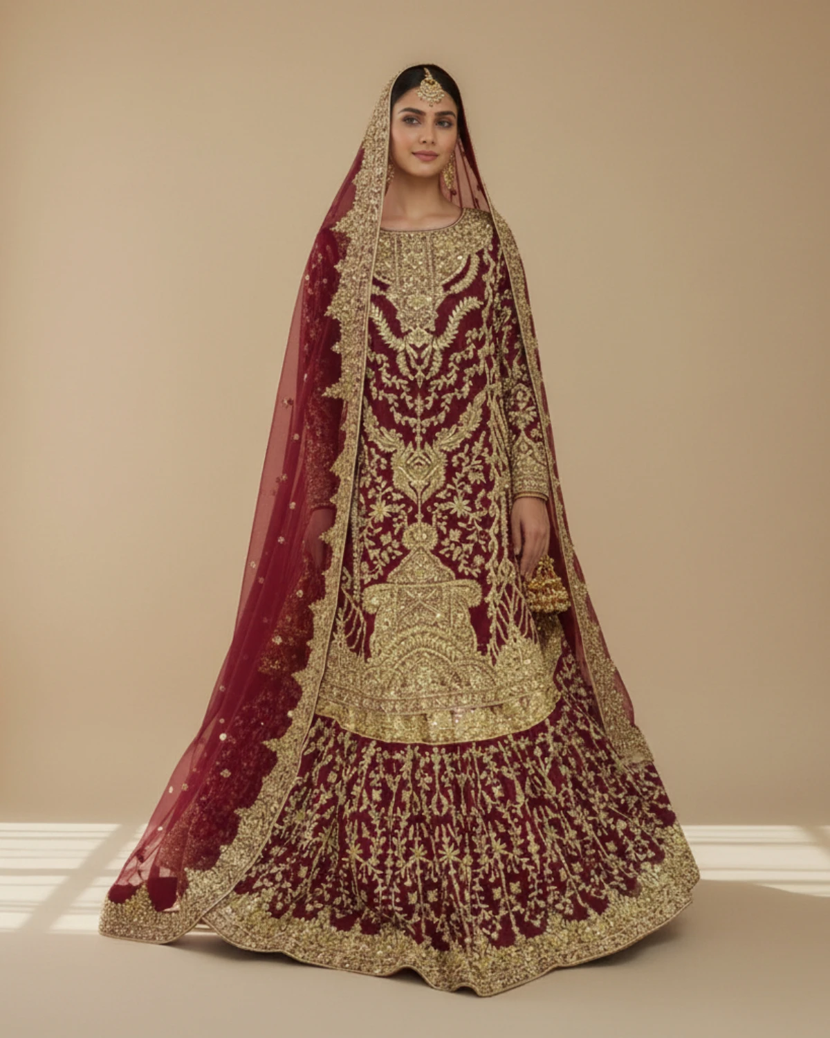 - Color: Maroon with Gold Embroidery