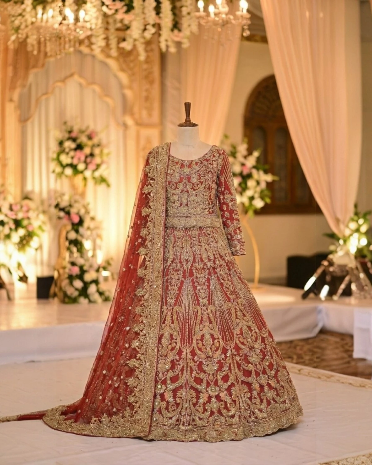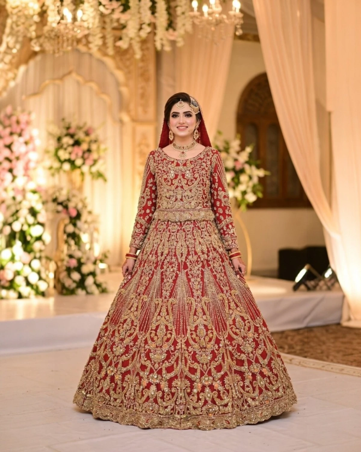 Crimson Gold Heavy Embroidered Royal Bridal Lehenga