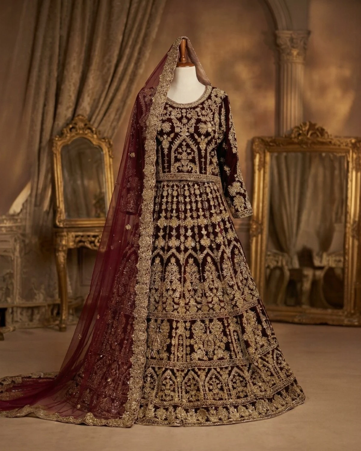 Maroon Bridal Lehenga With Traditional Gold Embroidery
