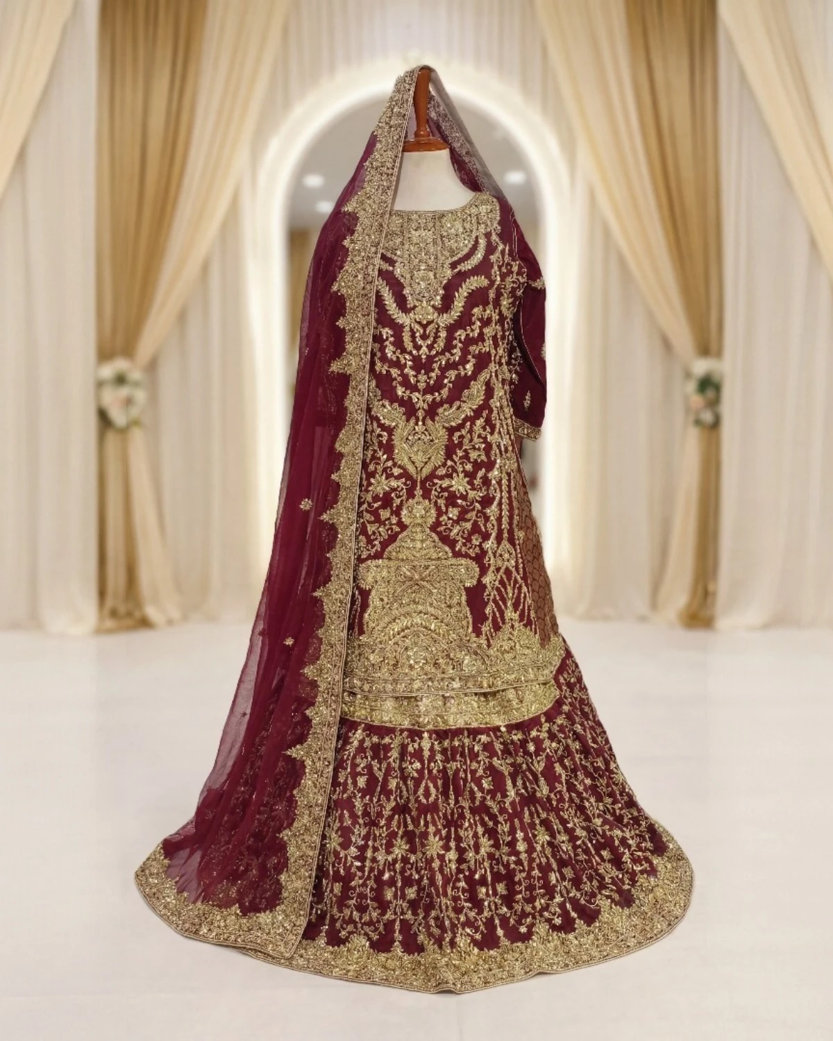 Maroon Bridal Lehenga With Heavy Gold Mughal Style Embroidery