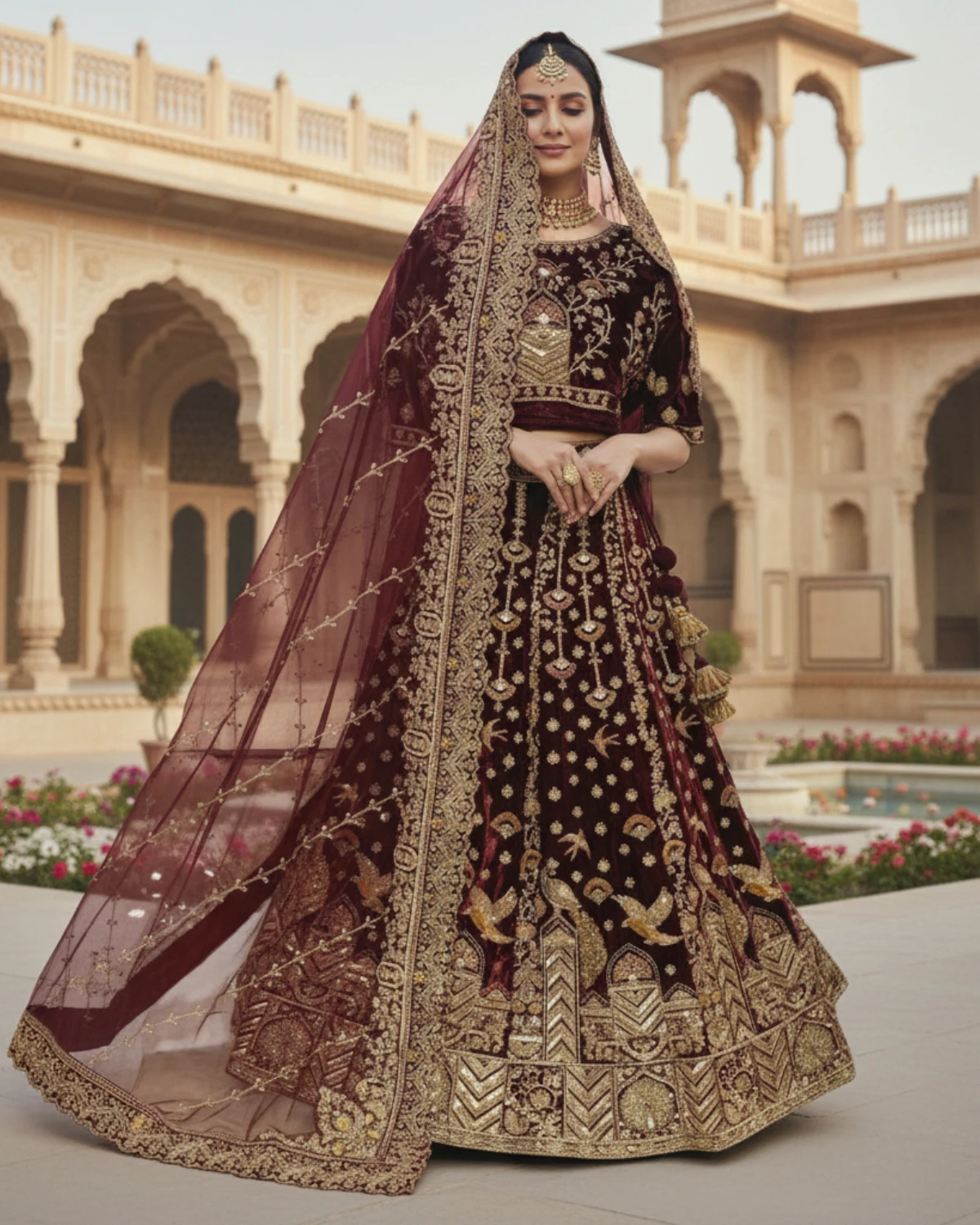 Maroon Bridal Lehnga With Rich Gold Contrast Embroidery
