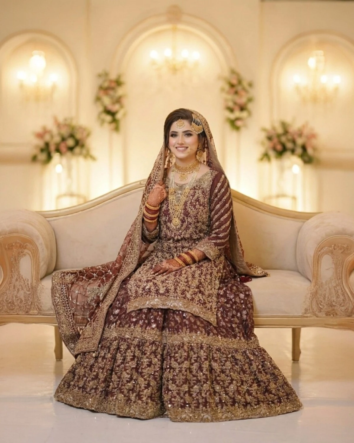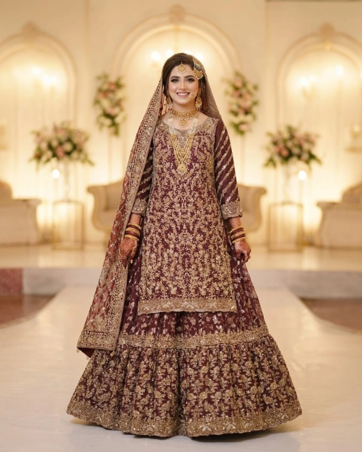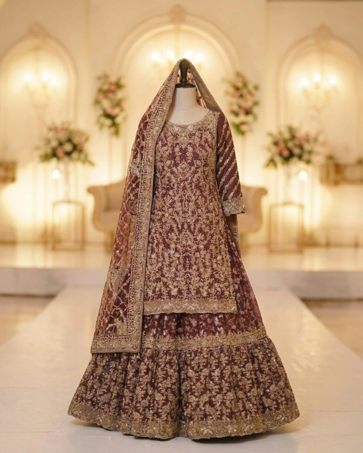 Luxurious Tux Gold Heavy Zari Embodied Farsi Bridal Lehenga